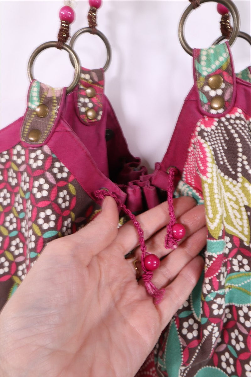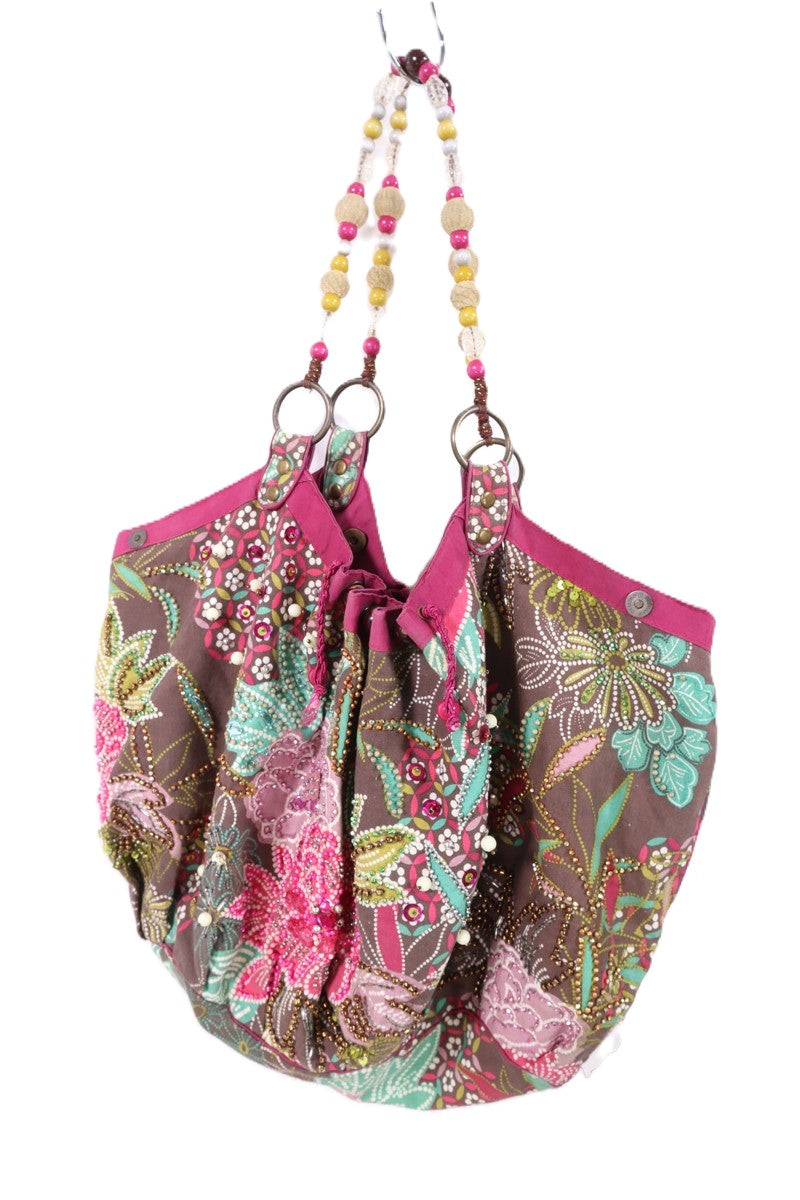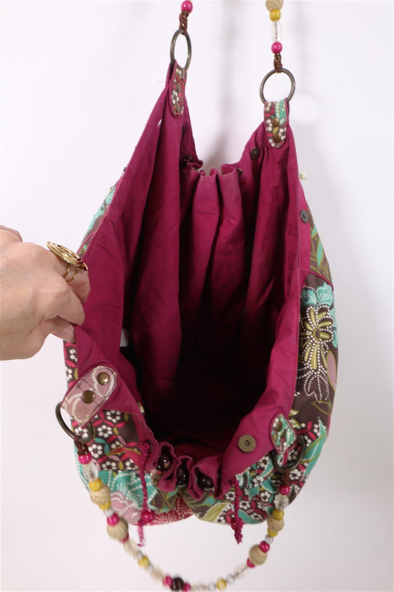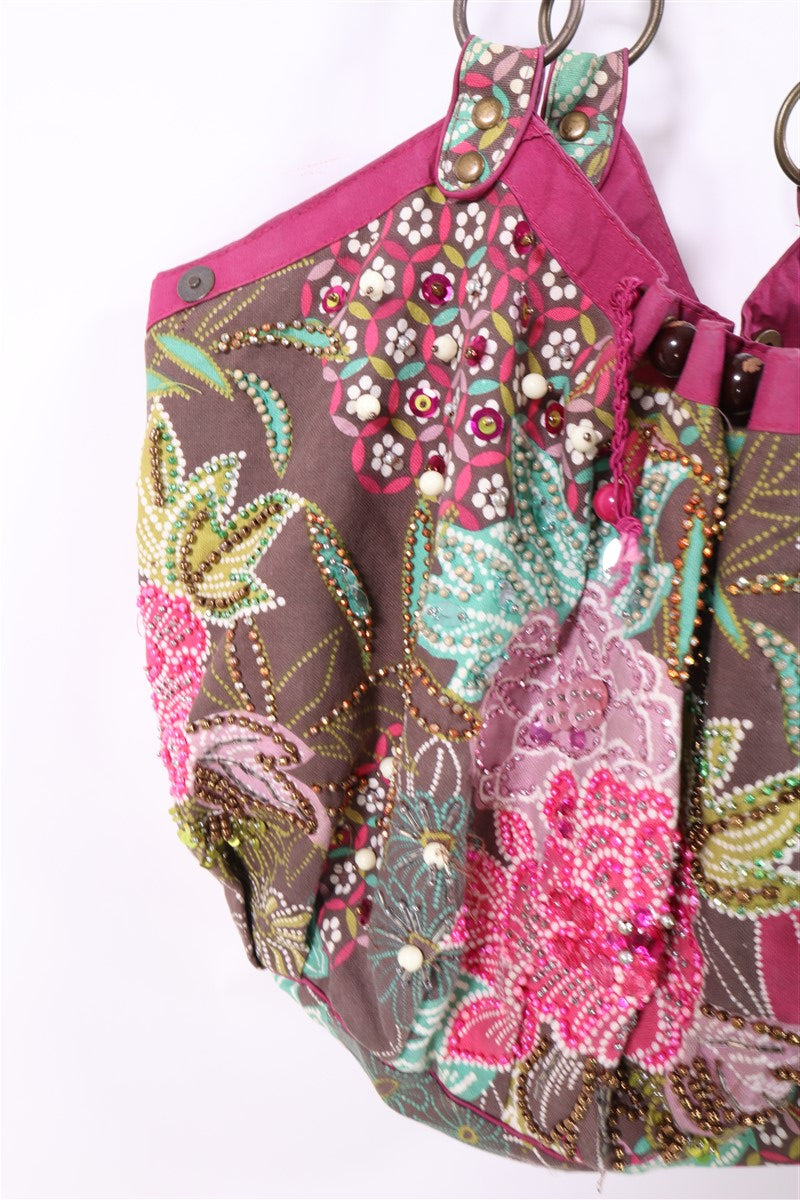 בפרינט פרחוני וצבעוני בגווני ורוד ירוק טורקיז בעיטור פייטים וניטים