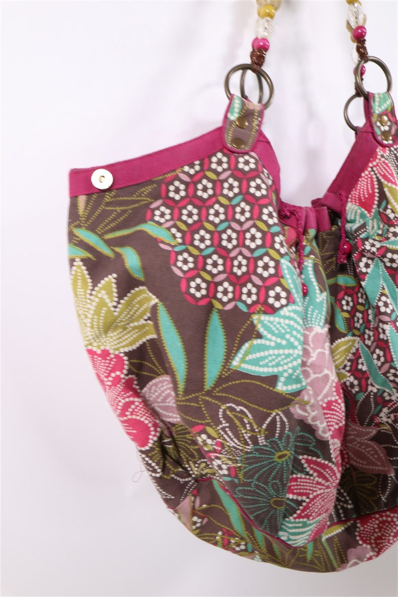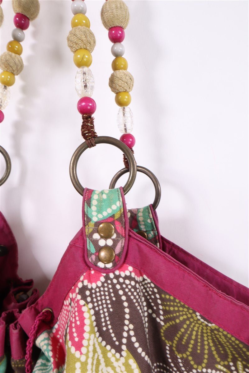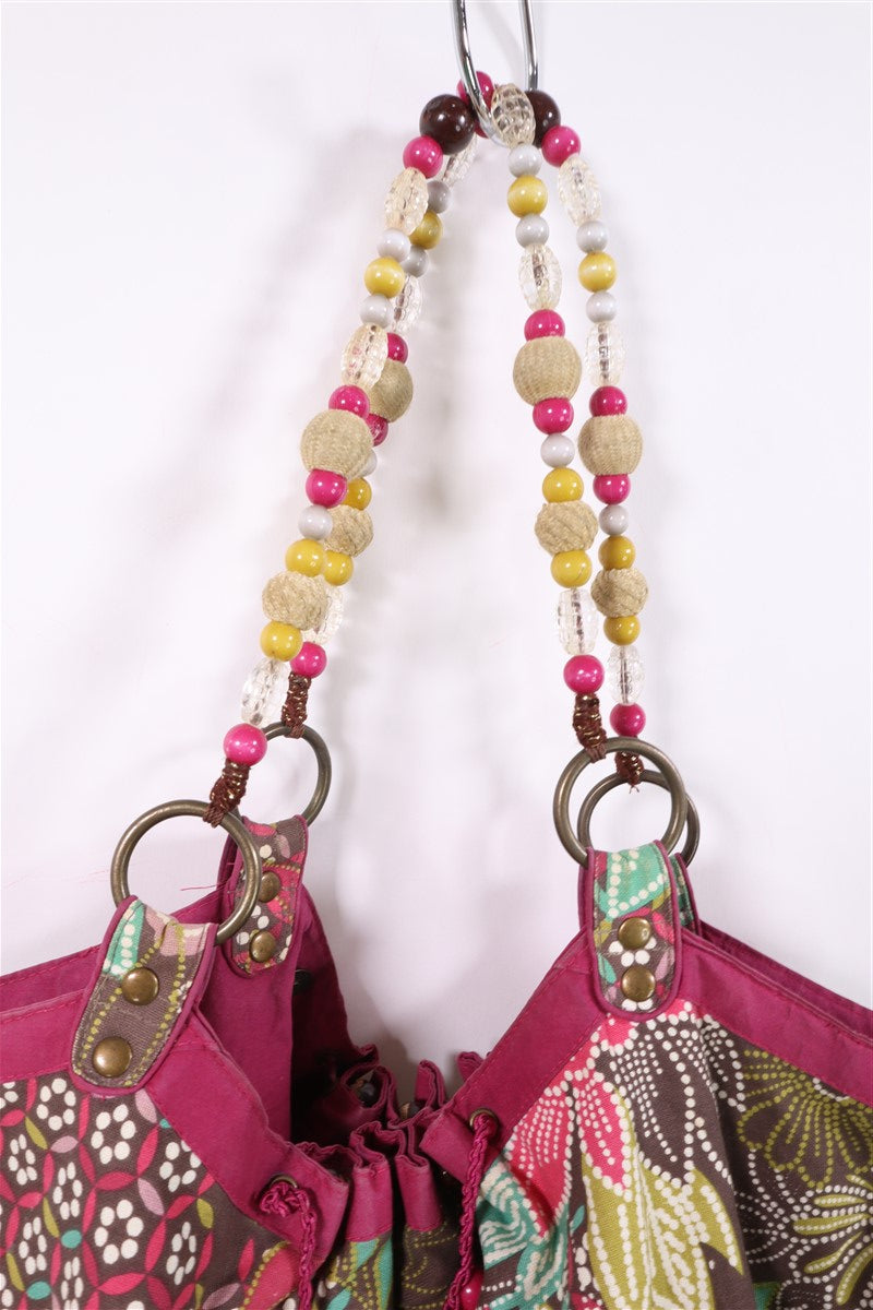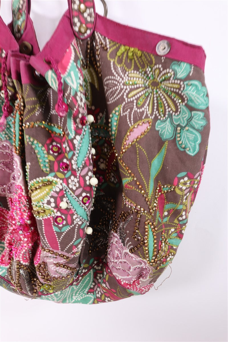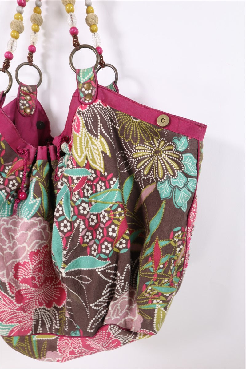 בפרינט פרחוני וצבעוני בגווני ורוד ירוק טורקיז בעיטור פייטים וניטים