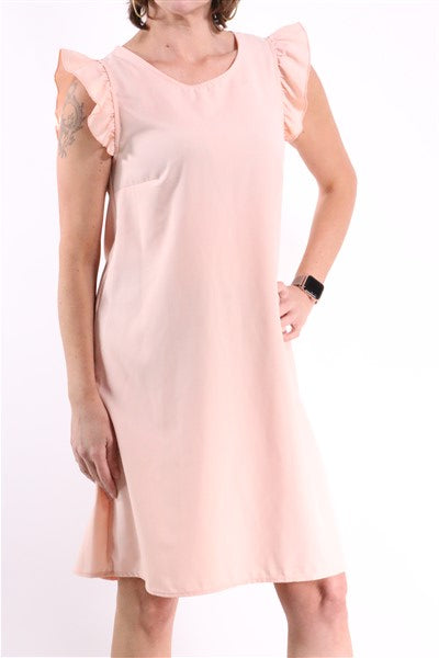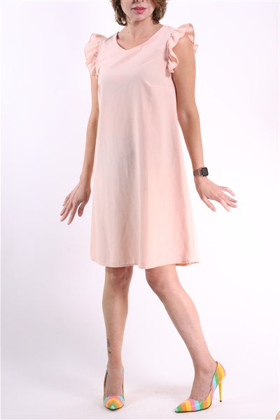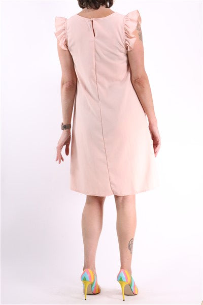 שמלה בצבע וורוד בייבי בגזרת A, עם שרווליי מלמלה וסגירת לולאה וכפתור בגב. שם המותג-HONIGMAN. מידה רשומה- 1. הרכב בד- ויסקוזה. אורך- 94 ס"מ. היקף חזה-98 ס"מ. מידת הדוגמנית-XS.